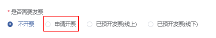 特别提醒:若已预开过发票,请不要勾选不开票或者申请开票,避免发生无法核销预开发票、重复开票情况。另外,若情况特殊无法对应勾选,请在备注中注明或电话咨询。