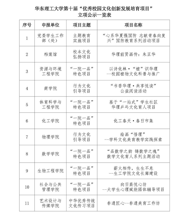 现将立项项目进行公示,公示期从4月24日至4月30日。公示期间,如有异议,请与党委宣传部联系。